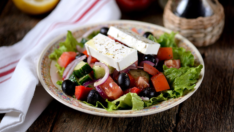 Probabilmente uno dei migliori cibi greci, il formaggio feta fresco viene normalmente utilizzato nelle insalate o come contorno. Puoi anche gustarlo al forno o con un’insalata invernale di verdure amare lesse o un primo piatto di verdure estive stufate in olio d’oliva o uno spuntino di mezzanotte con una dolce fetta di anguria ghiacciata!