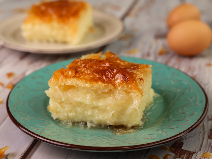 Il galaktoboureko è un ottimo dessert greco, fatto di pasta fillo croccante cosparsa di burro fuso. Assaggiane un boccone e sentirai che i suoi succhi riempiono tutta la bocca!